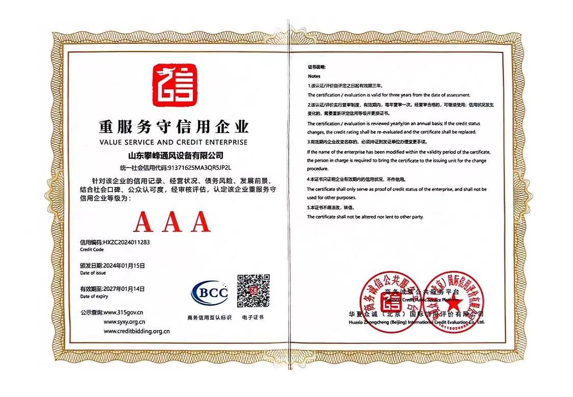 • AAA級(jí)企業(yè)等級(jí)證書(shū)